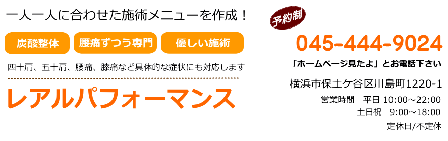 【横浜市保土ヶ谷区 整体 鍼灸・マッサージ レアルパフォーマンス】